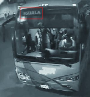 Captura de vídeo del ‘quinto autobús’ de Iguala en la noche del crimen saliendo de la central. Dentro se ve a algunos de los estudiantes que se lo apropiaron con intención de ir a México DF a una manifestación. La imagen es parte del informe de expertos de la OEA y no había sido recogida en el expediente de la Fiscalía, responsable del caso.