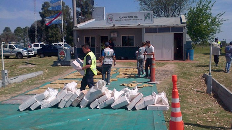 El can detectó la droga en la parte trasera del camión, en donde se ubica el cargamento. Fue entonces cuando los efectivos de la División de Toxicología de la Policía entrerriana comprobaron la existencia de más de una tonelada de marihuana oculta en un doble fondo. La droga estaba en paquetes perfectamente armados para su posterior comercialización.Cuando los dos traficantes, oriundos de la provincia de Buenos Aires, fueron puestos en evidencia por el perro, comenzaron a escapar. Uno de ellos fue capturado por los policías, pero el otro logró darse a la fuga, informó el diario Uno Entre Ríos. Se dispuso una intensa búsqueda aunque hasta las primeras horas del jueves se desconocía su paradero.En el hecho interviene el Juzgado Federal de Concepción del Uruguay. Fuente: infobae.com