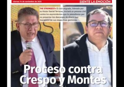 Ministra de Educación se abre a revisar la Ley Avelino Siñani y trabajar una nueva norma 13-11-2025 23:42 Política Blooming iguala 0-0 en Cochabamba y buscará el pase en casa 13-11-2025 23:28 Deportes El Tigre anuncia proceso civil en contra de Ronald Crespo y Héctor Montes 13-11-2025 23:26 Deportes Villegas apunta a un papel protagónico de Bolivia ante Corea del Sur 13-11-2025 23:23 Deportes Comandante en jefe de las FFAA plantea a Paz “abrir nuevamente el intercambio operacional y académico con países amigos” 13-11-2025 22:56 Política Juez Cruz fue asesinado por no liberar a un violador de una niña, según investigación 13-11-2025 22:54 Seguridad Ernesto Justiniano: “Tenemos que limitar la coca que se va al narcotráfico” 13-11-2025 22:33 Política Videos Curules en la ALD: Antonio Talamás arremete contra Luis Fernando Camacho 13-11-2025 22:20 Política Más noticias