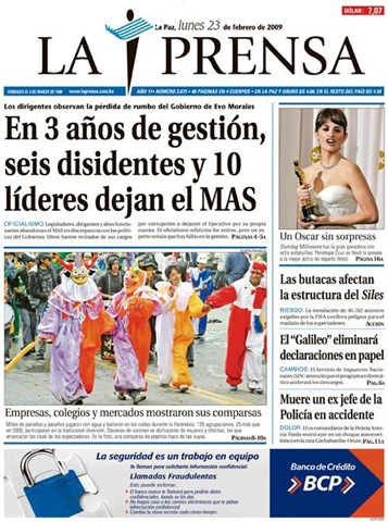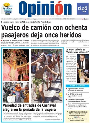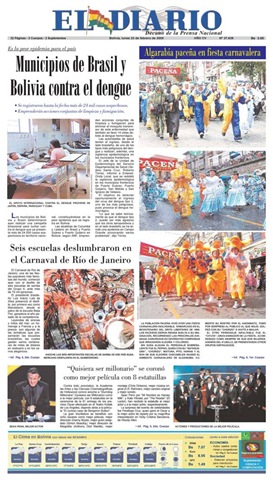 No hay sitio en Bolivia que se quede sin celebrar el Carnaval. Ninguna otra celebración moviliza a tanta gente, en días consecutivos. Los excesos con el consumo de alcohol suelen empañar el festejo; que este 2009 impere la conciencia.