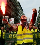 Empleados de ArcelorMittal se unen a las multitudinarias manifestaciones de Marsella (Francia)…Foto: gaceta.es