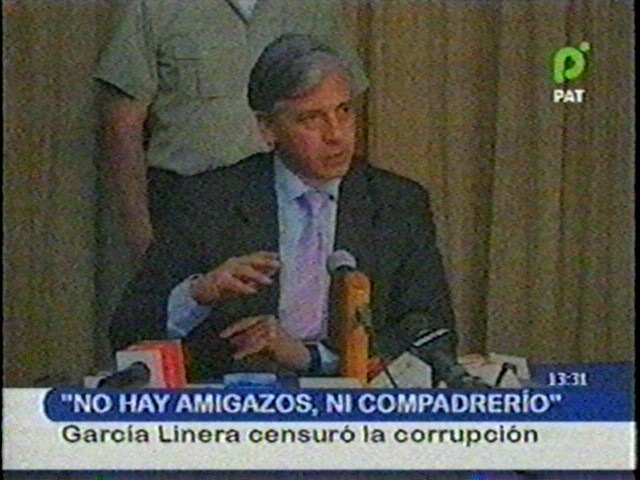 ‘La corrupción es un mal endémico que la arrastramos desde siglos atrás, posiblemente arrastremos décadas. Hemos dado muestras de que tenemos la gran voluntad de que corrupto que pase por delante se lo castiga. Arrastramos de atrás corrupción y es posible que se esté generando corrupción’ indicaba Alvaro García Linera. (PAT)