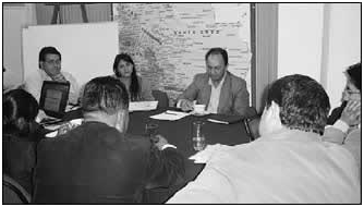 image Autoridad • Paola Miranda (centro) en una reunión con el actual viceministro Víctor Barrientos (izq.)