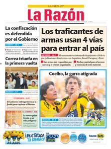Portada Los traficantes de armas usan 4 vías para entrar al país Camufladas en otro tipo de mercadería, dentro de containers o simplemente en camiones, las armas de contrabando viajan cientos de kilómetros desde Brasil, Argentina, Paraguay y Perú para ingresar a Bolivia y ser comercializadas en el mercado negro.