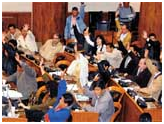 Aprobación: los diputados del MAS levantan la mano para aprobar el informe sobre contrabando
