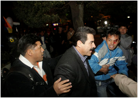 Uno de los momentos de mayor tensión se presentó al ingreso, cuando los simpatizantes del MAS intentaron agredir a Manfred Reyes Villa, candidato a presidente por bloque de oposición, Plan Progreso para Bolivia.