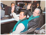 • EL BINOMIO DE AS • Joaquino y Suárez, al interior de la CNE, saludan después de presentar sus listas de parlamentarios.