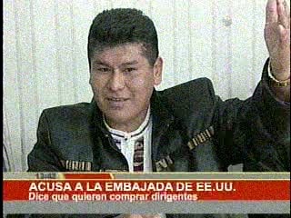 ‘Manfred Reyes Villa va gastar plata más de 3 millones de dólares ¿de dónde saca esa plata? Ahora, yo tengo información que hoy la Embajada de Estados Unidos está invitando a algunos dirigentes a una gran almuerzo, a un cóctel. Hay un trasfondo, utilizar algunos dirigentes para hacer pensar que los indígenas está fraccionado. Aquí no está fraccionado. Es para financiar. Manfred Reyes Villa va hacer eso, es la campaña sucia, en el momento dado hacen satisfacer, inclusive van a ir a meter plata a cada votante’ indica Fidel Surco. (Unitel)