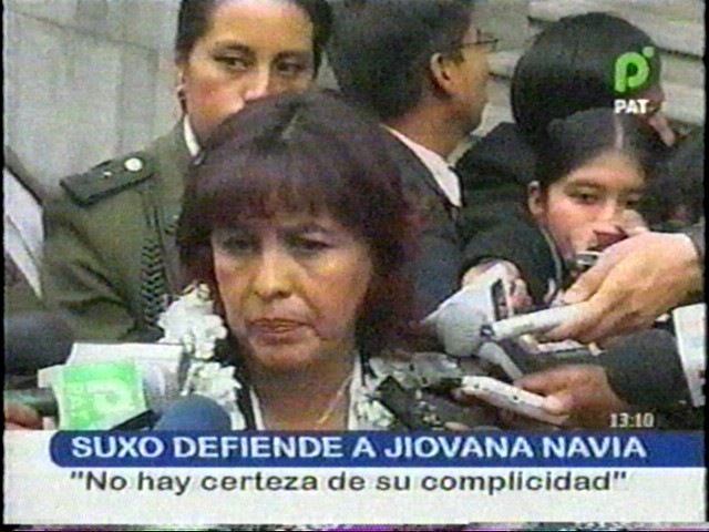 ‘El tema de la señora Navía está más relacionado con el tema del asesinato que el hecho de corrupción y nosotros no estamos a cargo del tema del asesinato. Nosotros, no tenemos en este momento la certeza de que ella habría participado, sin embargo, según las declaraciones que se tienen sería en la casa de sus parientes donde se entregaba el dinero. Pero, todo ello, seguramente vamos a tener una vez que la Fiscalía entregue la proposición acusatoria’ indicó Nardy Suxo. (PAT)
