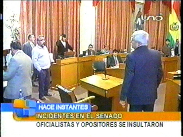 Puesto que hay que notificar a todas las partes. Quiero lamentar que hubiera habido un acto de bochorno promovido por actitudes violentas tanto de gente de la parte acusadora como de algún diputado del oficialismo. Estamos hace más de 3 meses tratando de instalar este juicio y se busca pretextos para dilatar el juicio. Lamento que se hayan golpeado y agredido a Policías que trabajan para el Senado Nacional. Lo que muestra una vez que el MAS quiere imponer sus abusos, nosotros vamos a seguir actuando en el marco de la ley’ indicó Oscar Ortiz. (UNO)