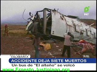 Un bus de la empresa “El Alteño” que viajaba de la ciudad de La Paz hacia la ciudad de Oruro, perdió el control y volcó. El saldo de este trágico accidente fue de 7 personas fallecidas y una veintena de heridos. El siniestro habría sido por imprudencia del conductor del bus.