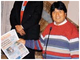(izq) Evo Morales se dirige a Raphael Ramírez, editor de LA PRENSA, recriminándolo en acto público en palacio por denunciar la corrupción gubernamental en Pando, fue en diciembre de 2008. En marzo de 2007 el Presidente acusó a LA RAZÓN de mentir cuando informó que el país no accedería al dinero de la Cuenta Milenio (der).