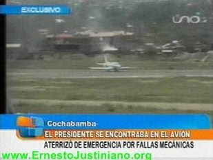 El avión presidencial, que trasladaba al Presidente de la República, Evo Morales de La Paz a Sucre, aterrizó de emergencia la mañana de este miércoles al aeropuerto Jorge Wilsterman de Cochabamba tras haber presentado una falla en el sistema hidráulico.