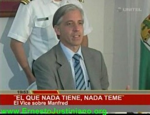 El Vicepresidente de la República, Álvaro García Linera, criticó al ex candidato presidencial por PPB- Convergencia para Bolivia, Manfred Reyes Villa y le dijo que el que nada tiene, nada teme.
