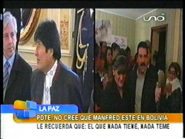 Si él dice que va ser detenido ya se autojuzga, sabe que ha cometido un delito. Yo decía oportunamente que un candidato se presenta como candidato, en el caso de Manfred Reyes Villa, para no ir a la cárcel, y ahora estoy convencido que quien se oculta, quien se escapa, porque el que nada tiene nada teme, qué temor, no hay ninguna persecución política, (el proceso) está en manos de la justicia. Todos los poderes del Estado tienen la obligación de contribuir a que se juzgue por corrupción o por daños (al Estado) o por violación a los derechos humanos. Yo no tengo información (dónde está Reyes Villa), el Ministerio de Gobierno me dice que está oculto en Bolivia, quiero ser sincero, no creo, aseveró. (Unitel)