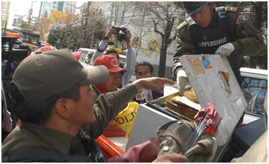 En la explosión del edificio Las Dos Torres resultaron heridos el comandante de Bomberos de La Paz, coronel Gustavo Daza, y el subteniente Jorge Ramírez. En la detonación del sindicato yungueño fue gravemente lesionada Arminda Colque.