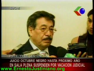 El proceso por octubre negro del 2003 que afecta a varios Ministros y al ex Presidente de la República Gonzalo Sánchez de Lozada, quedará suspendido para el próximo año. Así lo dejó claro el Presidente del Tribunal de Sentencia, Ángel Irusta, quien aseguró también que ya se logró avanzar en un 40% el proceso contra los demandados.