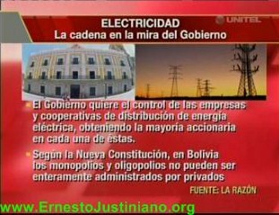 En la labor de adecuar el proyecto de Ley de Electricidad a la nueva Constitución Política del Estado (CPE), el Gobierno prevé tener el control también de las actuales empresas y cooperativas de distribución de energía eléctrica, consiguiendo la mayoría accionaria en cada una de éstas.