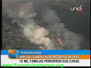 Un niño de 12 años y un pirómano fueron sindicados por las autoridades chilenas como posibles autores de algunos de los siete incendios forestales en más de 2.000 hectáreas en el centro y sur de Chile, que además quemaron viviendas que fueron desalojadas.
