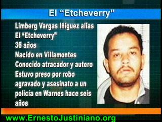 El ex recluso Limberg Vargas Iñiguez apodado ‘Etcheverry’ murió ayer al enfrentarse con la policía cuando fue sorprendido con otros tres delincuentes intentando atracar una farmacia y un punto internet en el barrio La Chacarilla en la ciudad de Santa Cruz. Un policía fue herido con un balazo en el pecho el cual fue trasladado de urgencia a la Caja Nacional de Salud.