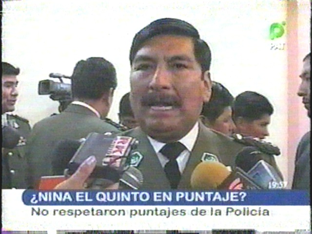 El Cnl. Oscar Nina aclaró ‘Ni siquiera yo sé en qué puesto estoy. Vale decir yo no sé de dónde han sacado la información, quien o cuando, porque la calificación es relativa. Hoy en día, se está calificando el trabajo de 31 años de dedicación, de entrega y de esfuerzo a la comunidad’ (PAT)
