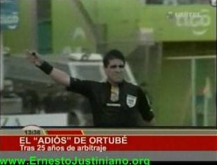 El flash, las cámaras de televisión y los reporteros estaban detrás de los campeones de la AeroSur, situación que dejó a segundo plano el adiós del árbitro. Ortubé cumplió 45 años en diciembre, edad en la que la FIFA jubila a los árbitros del referato internacional; por ello, el ahora ex árbitro ayer sólo tuvo palabras de agradecimiento a su familia y a quienes lo apoyaron en su carrera.