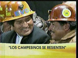 Tv noticias. El presidente cuestiona actitud de los dirigentes campesinos, acaba su gestión y se convierte en contestatario, señala. Agrega que esa situación no ocurre con los mineros.