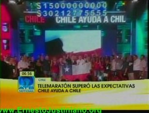Abrazos fraternos se mostraron en la Teletón chilena Chile ayuda a Chile”. La Presidenta Michelle Bachelet y el Presidente electo Sebastián Piñera, se olvidaron de sus filias políticas y se hermanaron por la recuperación de las zonas más afectadas del país vecino.