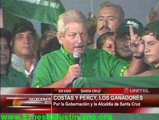 El primer conteo rápido de los escrutinios a boca de urna en Santa Cruz dan como ganadores a Percy Fernández como Alcalde reelecto y Rubén Costas, de ex prefecto a la Gobernación cruceña.