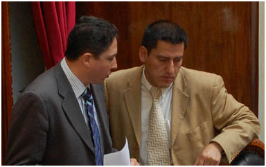 image Javier Zabaleta (der) siempre al lado del MAS; en la foto «coordinando» su trabajo con Héctor Arce, mientras sucedían ataques furibundos del gobierno al MSM antes del 4 de abril.