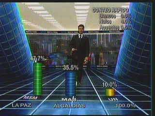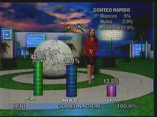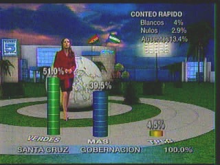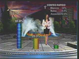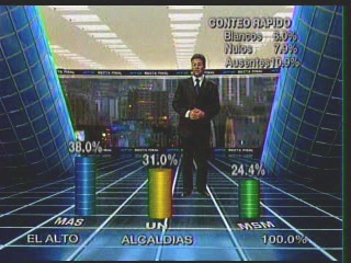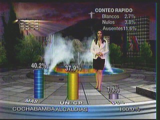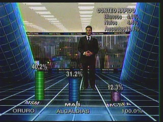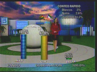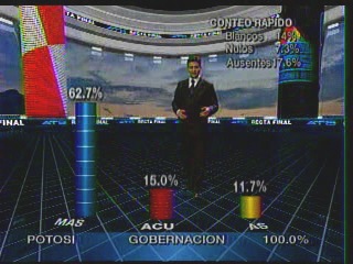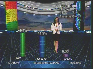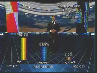 ATB. Conteo rápido al 100%. Oficialismo logra 5 triunfos y oposición 3 a nivel de gobernaciones; la oposición gana 7 de 10 municipios capitales de departamento, no se consignan datos de Cobija.