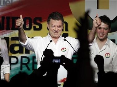 El candidato oficialista Juan Manuel Santos ganó cómodamente el domingo la elección presidencial de Colombia, pero no alcanzó la mayoría absoluta y tendrá que enfrentar en una segunda vuelta al aspirante del Partido Verde, Antanas Mockus.