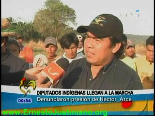 Los Diputados indígenas de la línea del MAS, Pedro Nuni y Bienvenido Zacu, se sumaron a la marcha de la CIDOB hacia la ciudad de La Paz, pidiendo autonomía indígena y más escaños parlamentarios. Ambos a momento de dar su informe sobre las negociaciones en la Asamblea Plurinacional, acusaron al Presidente de la Cámara de Diputados, Héctor Arce, de dividir a los indígenas y la marcha.