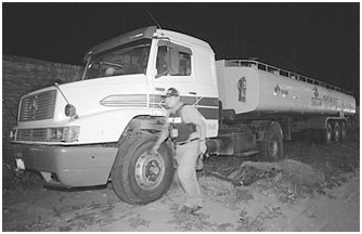 Transporte. El camión cisterna, con placa del país, fue descubierto fuera de una casa, donde dejaron la carga