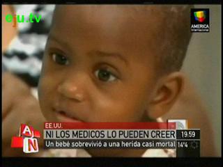 Un bebé de 17 meses sobrevivió de manera milagrosa a una herida cerebral potencialmente fatal. Este fin de semana, un gancho se incrustó en la parte posterior de la cabeza de Jessiah, luego de que el pequeño cayera sobre una máquina de lavado a presión, de acuerdo con el reporte de ‘Good Morning America’.