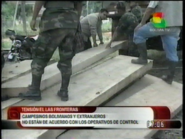 Algo parecido ocurre en Soberanía, frontera con el Perú donde los campesinos se resisten a que los operativos prohíban a que los bolivianos extraigan y lleven madera de forma ilegal. (Bolivia Tv)