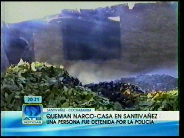 Cochabamba: La actividad del narcotráfico se extiende en lugares alejados de Cochabamba, efectivos policiales junto a pobladores de Calla Callan, en el municipio de Santibáñez, quemaron una vivienda donde se fabricaba cocaína, la propietaria no era denunciada por las constantes amenazas de muerte a sus vecinos.