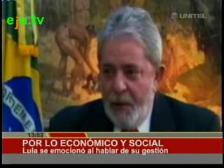 Al abordar sus logros se emocionó y no pudo contener el llanto dos veces. La primera le llegó al hablar sobre los logros económicos. Lula dijo que sintió "orgullo" cuando el estatal Banco Nacional de Desarrollo Económico y Social (BNDES, fomento) firmó en 2006 un préstamo de 200 millones de reales (63,8 millones de dólares) para una cooperativa de recolectores de papel y cartón.