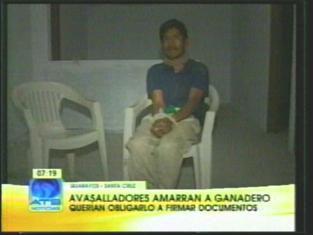 Tv noticias. Conflicto por tierras. Más de 100 loteadores avasallan predios de ganadero atacan a ganadero, le obligaron a firmar documentación para “regalar” sus tierras.