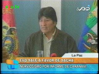 Uno de los responsables en el caso de Caranavi, es el Ministro de Gobierno, Sacha Llorenti, según el informe del Defensor del Pueblo, sin embargo, el Presidente Evo Morales le da su total respaldo. Morales dijo que Llorenti es un compañero de lucha de mucha confianza y por eso le da su apoyo.