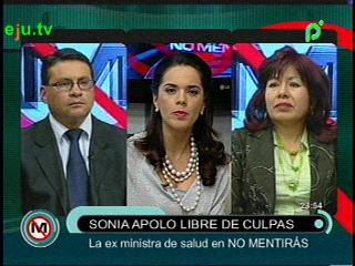 Entrevista a la ex Ministra de Salud, Sonia Polo. “El Viceministro de Transparencia presentó una denuncia sobre resoluciones contrarias a la Constitución en una firma, otorgando una ampliación de 20 años a la empresa Lotex. Mi persona estuvo sufriendo dentro de una celda inhumana durante muchos días y habiendo sido aprehendida injustamente. Digo con la verdad en la mano, que se ha cometido una injusticia y se han violentado los derechos humanos, atentando con el derecho a la defensa y a la presunción de inocencia. Estuve 4 días presa en una celda. Se comprueba el error garrafal de los que interpusieron la denuncia en mi contra. Varias organizaciones sociales me han demostrado su solidaridad. Está en manos del Presidente que yo vuelva nuevamente a mi cargo. Hasta la fecha el plan plurinacional de salud no se ha implementado”.