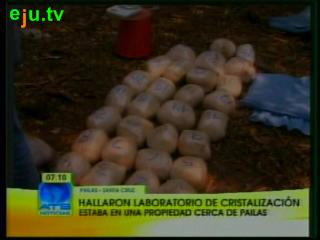 El laboratorio, que contaba con tecnología colombiana y peruana, está ubicado a 60 kilómetros de Santa Cruz y a 17 de la carretera que une Pailas y Cotoca, cerca de la comunidad denominada San Lorenzo, donde se encontró 29 paquetes conteniendo cada uno aproximadamente dos kilos y medio de pasta base de cocaína, lo que da un peso aproximado de 75 kilogramos. También se encontró 150 litros de ‘agua rica’ o cocaína líquida y una gran cantidad de precursores químicos como acetona, gasolina y diesel.