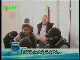 Este miércoles, el extranjero fue trasladado desde Santa Cruz a la sede de gobierno para que preste declaraciones informativas. Franz Contreras, fiscal designado a las investigaciones aseguró que por principio de confidencialidad no dará mayores detalles de la declaración, sin embargo aseguró que Dirk Schmidt admitió que fue contratado por Torrico como su asistente personal.