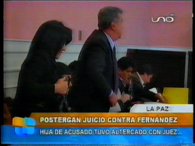 DISCUSIONES EN LA CORTE Otra vez suspenden la audiencia de juicio oral contra el ex Prefecto de Pando, la hija del procesado eludió al Juez, éste intento detenerla. (UNO)