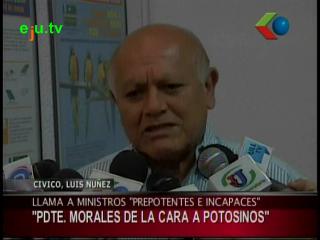 El Presidente del Comité Cívico Pro Santa Cruz, Luis Núñez, llamó prepotentes e incapaces a los Ministros del Presidente Evo Morales ya que aún no han logrado resolver el conflicto en el departamento de potosí. Núñez le pidió al Primer Mandatario, desista de su viaje a la República de Paraguay para resolver el conflicto que tiende a agravarse más.