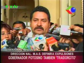 El Senador del MAS, Isaac Ávalos, llamó “traidorcito” al Gobernador del departamento de Potosí, Félix González, quien en días pasados le dio la espalda al Gobierno Nacional y se sumó a las demandas de los cívicos potosinos. Además Ávalos cuestionó la huelga de hambre que habrían realizado los senadores oficialistas exigiendo diálogo al Gobierno con los potosinos. El senador aclaró que solo la dirección nacional del Movimiento Al Socialismo (MAS) podría determinar la expulsión de dichos militantes.