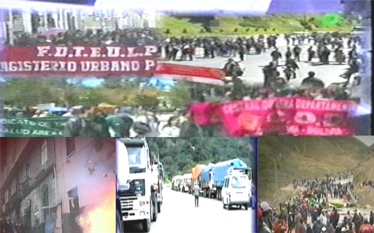 Eso también soñaba Sánchez de Lozada, Paz Zamora, Tuto Quiroga soñaban con aquello porque toda la vida que había una medida de presión decían: no vamos a negociar bajo presión, eso no es nuevo. Pero, este gobierno tiene la fuerza de aplicarlo, tiene la fuerza de llevarlo a la práctica, los anteriores no tuvieron esa fuerza, tiene que ver con el 65% de la votación boliviana a favor del presidente Morales, entonces es la política del escarmiento y esa política de escarmiento después de 17 días que se negaron a negociar con Caranavi, ¿por qué? Porque están presionando y cuando la presión fue muy grande, porque ese bloqueo tuvo sus víctimas porque ya no daban más, 3 personas murieron a consecuencia de falta de atención médica, a consecuencia de los bloqueos y ya la situación era insostenible y como el gobierno quería escarmentarlos.