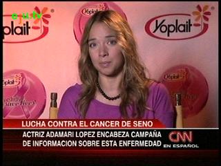 Entrevista a la actriz mexicana, Adamari López. “Hace cinco años fui diagnosticada con cáncer de seno, afortunadamente ahora me encuentro muy bien. Es una enfermedad, difícil y dura porque el tratamiento es agobiante. Esta campaña para mi es súper importante porque de manera personal aportaré sobre mi lucha contra este mal. Me estoy uniendo a una compañía, que tiene un compromiso serio, sobre alertar y enseñar a las mujeres sobre el cáncer de seno. Estoy orgullosa de ser la portavoz de esta campaña”.