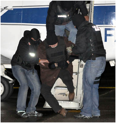 Apenas aterrizó el avión que traía al ex Prefecto, un forense entró en la cabina para auscultar al detenido. A las 03.17, apareció Valle, enmanillado, con chaleco antibalas y un gorro que impedía ver su rostro. Al bajar de la escalerilla, se lanzó y fue sujetado por sus custodios antes de caer.