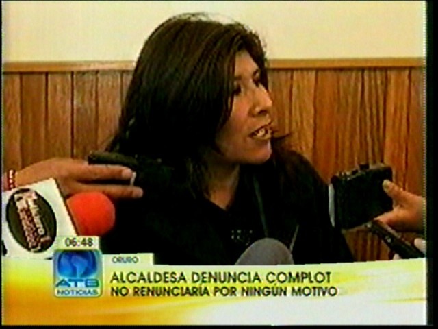 ALCALDESA DE ORURO DEL MSM DENUNCIA UNA SERIE DE PRESIONES DEL MAS, DENUNCIA UN COMPLOT para sacarla del cargo.